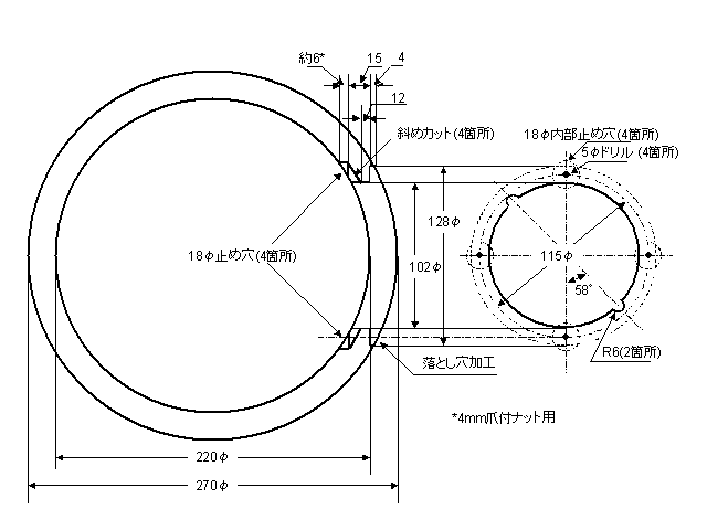 スピーカ・ユニット取り付けボルト受けのつめ付ナット用の止め穴加工やスピーカ端子用の取り付け穴と止め穴加工も施しました。