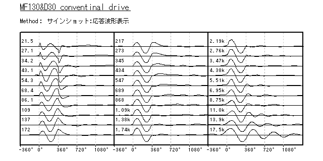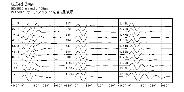 特製バフルとに最適型ネットワークによって厳密な時間あわせを施した結果、1.28kHzのクロスオーバ周波数はもちろん広い帯域で良好な波形応答特性が得られています。「もし、理想的なシングルコーンスピーカがあれば」を彷彿とさせてくれます。