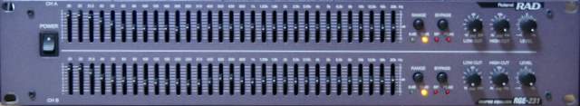 周波数特性を補正するツールですが使い方が分からないのか的外れな解説をする記事すら見かける昨今です。プロの世界以外では製品を見かけることが少なくなっています。ローランドのグラフィック・イコライザRGE-231型により広い周波数範囲で±3dB以内とフラットにチューニングしています。