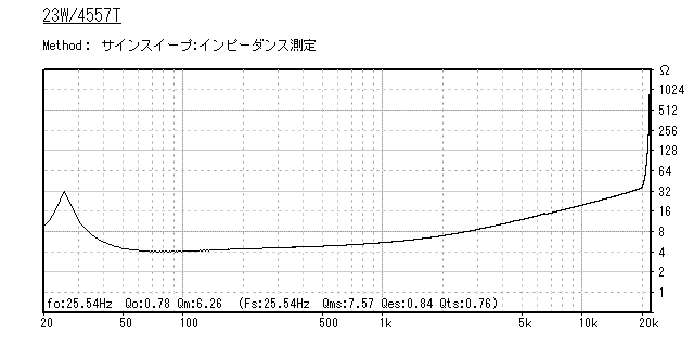 メーカ発表と同じで周波数特性に鋭いピークを示す6〜7kHzで、わずかにインピーダンスカーブ変化が認められます。