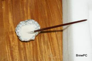 | 「との粉」を同量の水で溶いて | 隙間を埋めて乾燥後400番で磨き上げます |