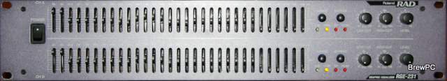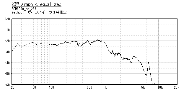 第8回BSNミニ視聴会への出展を明日に控えて、ローランドRGE231型31バンドグラフィックイコライザで低域は20Hz〜1kHzをフラットに、それ以上の高域を下げてウーファとして望ましい周波数特性に電気的に補正しました。