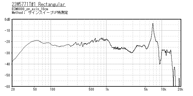 推奨よりも小さな容積にした結果Qtsが1.15と高くなり最低共振周波数でピークがでます。750Hzの定在波が立っていないことも分かります。