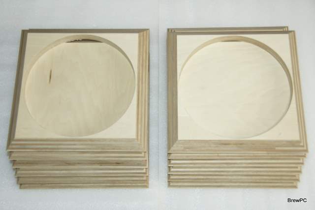 バフル板はスピーカユニットが取り付けられるぎりぎりの大きさ、270mmx270mmとして、MG100HR-S型を組み込んだスフェリカル・スピーカをセンターに置いたときタイムアライメントが合うように奥行きを320mmとしました。板厚を21mmとし4辺を45度でカットすることで接着幅が30mmとなり強固な構造が期待できます。