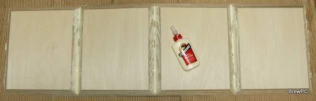 ずれないように側板4枚を養生テープで連結してから接合面に接着剤を塗り4角に折りたたむことで作れそうです。やってみたところ接着中のずれがなく高精度に組みあがりました。接着中はベルトで縛りテンションをかけています。