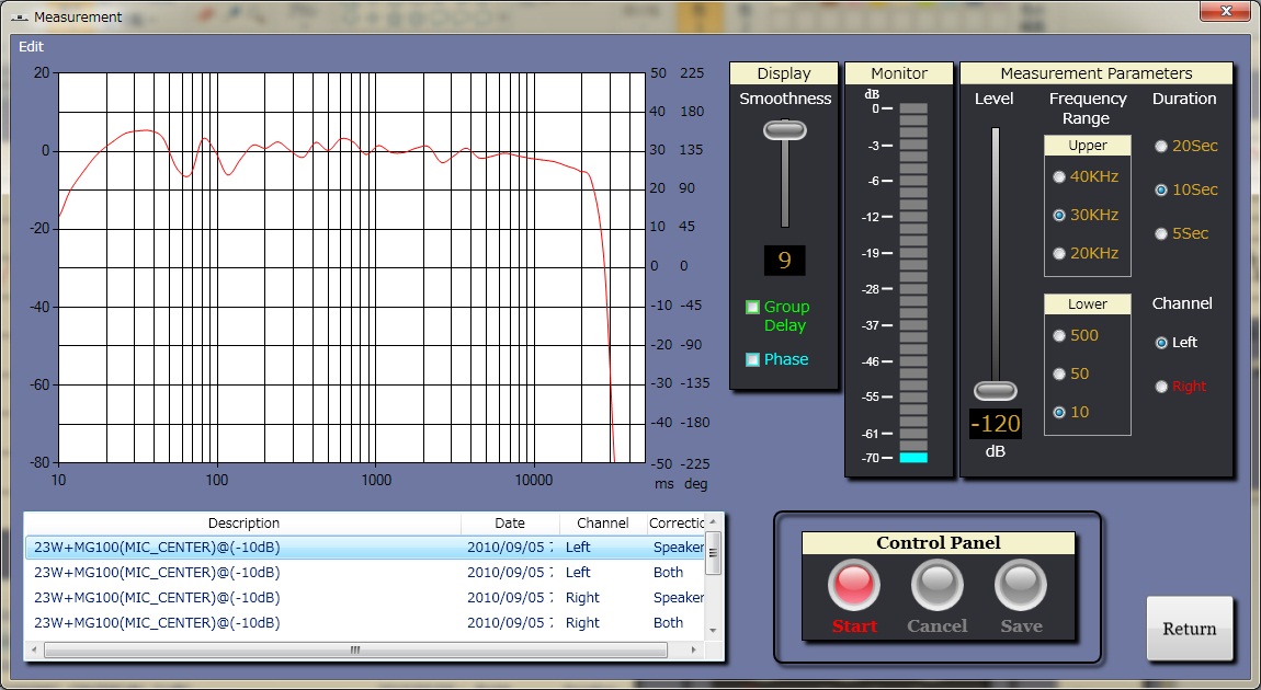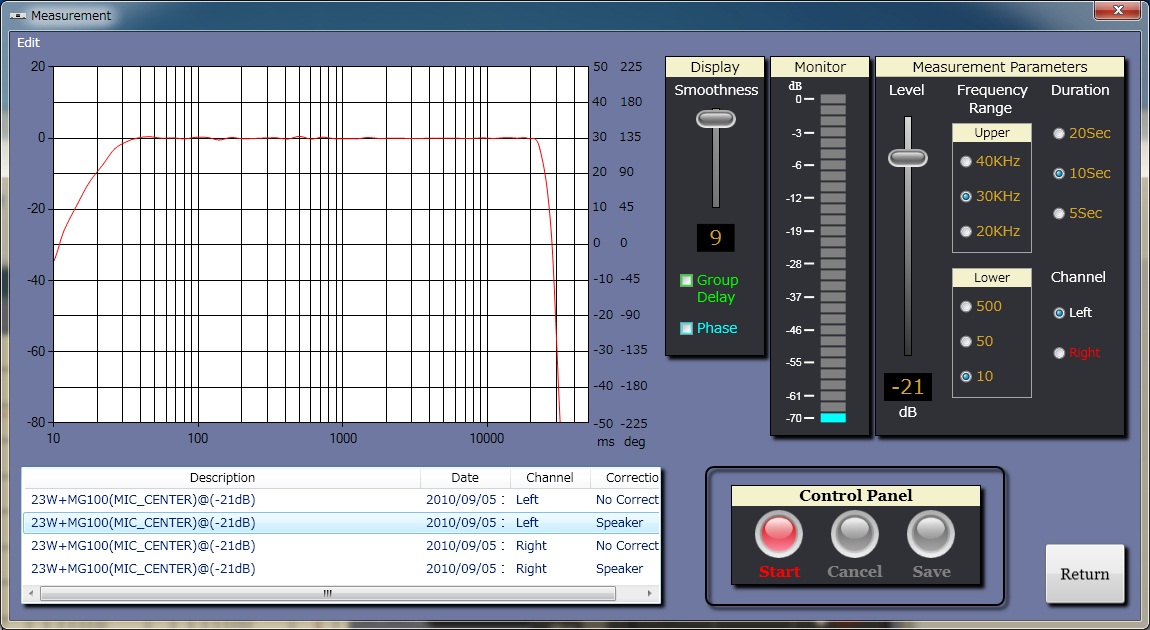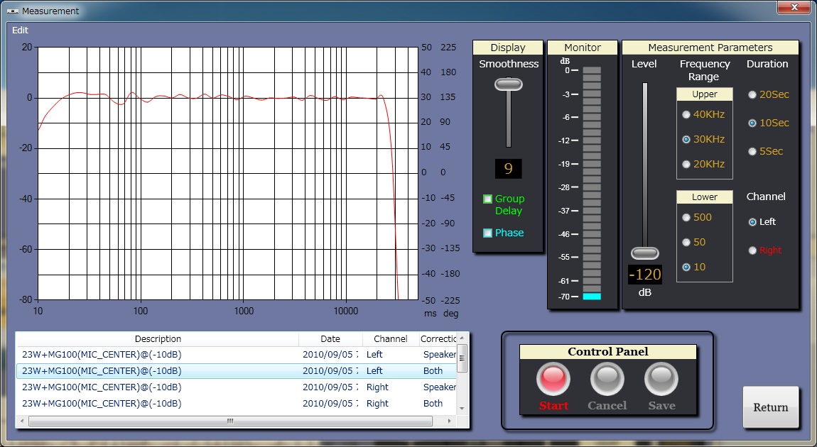 MG100HR-Sダイアフラム形状からくる高域の細かな凸凹さえまっ平らになり理想的な応答に補正される。マルチウェイでこの周波数特性はかつて見たことが無い 。すごい!
