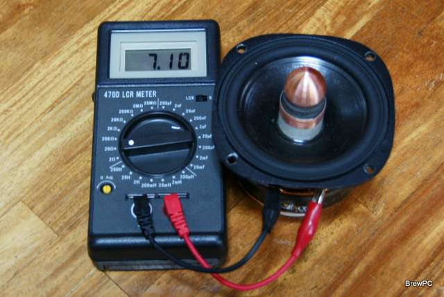 LCRメータで初期値インピーダンス(7.10Ω)とインダクタンス(0.300mH)を求めたら、対応するそれぞれの値を変えて高域のインピーダンス特性 がフラットになるようフィッティングする。