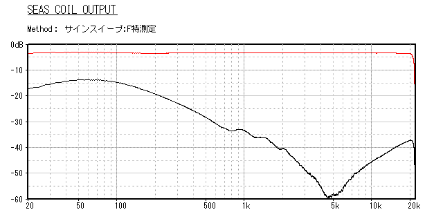 コイル出力の単発サイン波データで、20Hzから1.8kHzまでダイアフラムが正確に制御されていることがわかる。実用帯域は2〜3kHz程度だ。