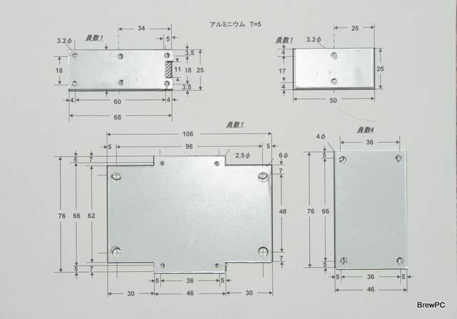 200x300x5mmアルミ材と加工はいつもの東急ハンズ横浜西口店3F工房にお願いした。いつもながらの丁寧な仕上げだ。原寸の加工図に 加工済みの部材を重ねてみた。