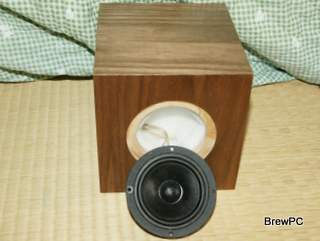 消え入る余韻が素直な北海道産バーチ(白樺)15mm合板による立方体エンクロージャだ。内容積2.2リッタの密閉型だ。製図、カットはBSNの新設備、ビジュアルミルとNCマシンによる。