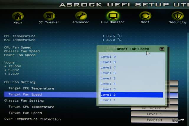 H61M/U3S3の最新のBIOSはグラフィカルなマウス操作で行う。CPUファン、ケースファンともに回転数が静かなLevel1に設定している。
