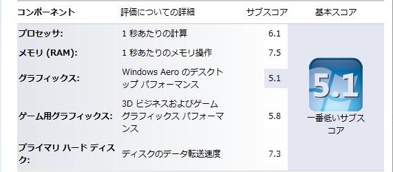SSCの環境はVISTA(SP1以上)またはWin7だ。最新のSP2(サービスパック2)適用のVISTAをチョイスしたが、一番低いグラフィックスでも5.1と高スコアで、なによりもWin7で感じる一呼吸遅れる感じが皆無でさくさく動く。