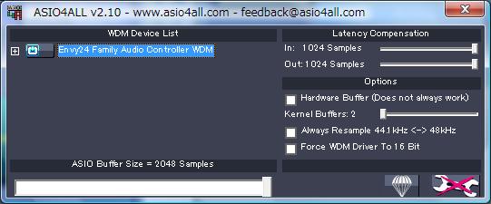 SSCのオーディオI/FはASIOが必須だが、大多数のサウンドカードはASIO非対応だ。OnkyoのSE200-PCIをASIO4ALL( http://www.asio4all.com/ からDL)を適用してASIO化する。