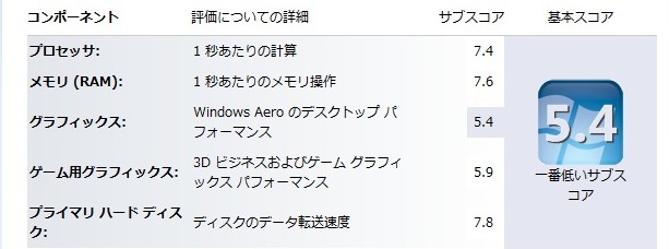 プロセッサ、メモリ、プライマリハードディスクのサブスコアは究極の7点台がずらっと並びます。