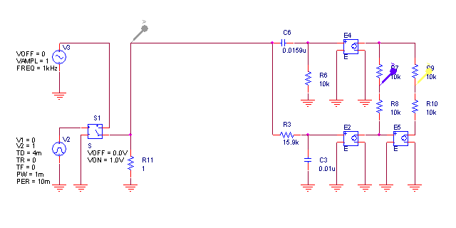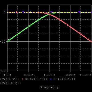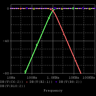 1kHz,-18dB/octネットワーク 単発サイン波シミュレーション |