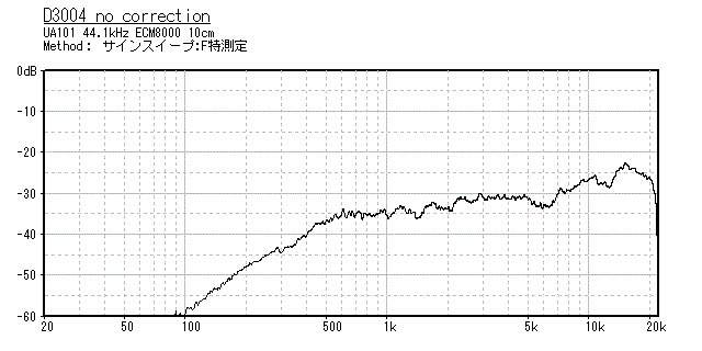 単発サイン波データは再生音を聴きながらコレクションをOFFにしてはシャッター、ONにしてはシャッターを繰り返し採取しました。コレクションONとOFFの音の違いを20Hzから順に20kHzまで聴いたわけです。コレクションONでは同じ音質のまま音程が変わります。コレクションOFFでは周波数毎に音色 が変わりました。スピーカは連続サイン波による振幅特性の評価のみでは不適切で不十分なのだと分かります。
