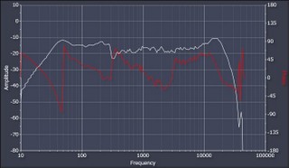測定マイクはスピーカの軸上特性を考慮してトィータとミディアムをむすぶ線上でトィータから50mmミディアム寄りで200mm離して設置しています。周囲の反射の影響が少なく、 トィータ軸上から14度オフセットがつきますが全域で振幅特性をシビアにみて偏差がない設置です。クロスーバー周波数からウーファは300Hz以下で、ミディアムは3kHz以下で 同様に振幅特性の偏差がありません。