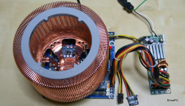 ヒートパイプから長尺のカッパーワイヤーで排熱する構造で外径222mm、高さ132mmとMiniITXボードを覆い尽くすサイズです。