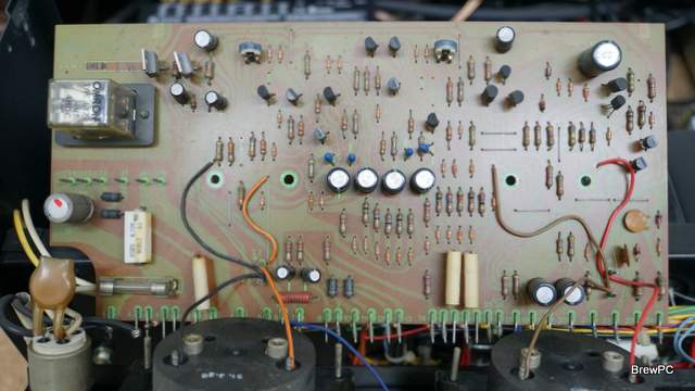 フロント・パネル、サブ・パネルと順に外し引き出したピーク・プログラム・メータ基盤だ。ピーク・プログラム・メータ回路のトランジスタの足が腐食して真っ黒になっていた。トランジスタ単体の経年劣化によるトラブルと思うが、念のため回路図を書き起こして検討してみた。