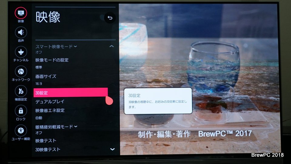 フルHDの3Dソースを3Dパネルで観る立体はソースに依存するが,伸ばした手を重ねることができるほど手前に飛び出して結像する.視点を動かせば隠れていた影の部分が見え始めるさまは4K2Dの平面的表示とは雲泥の差 で別次元の表示だ.2Dビデオの3Dコンバート機能も楽しい.