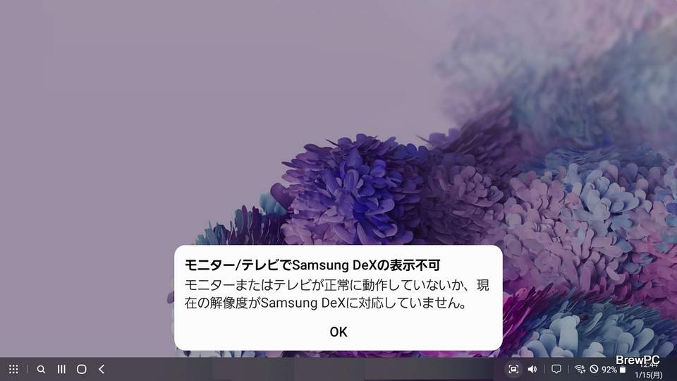 サムソンS20 ULTRA 5Gとの接続、Dex画面が映っている様子が分かる |